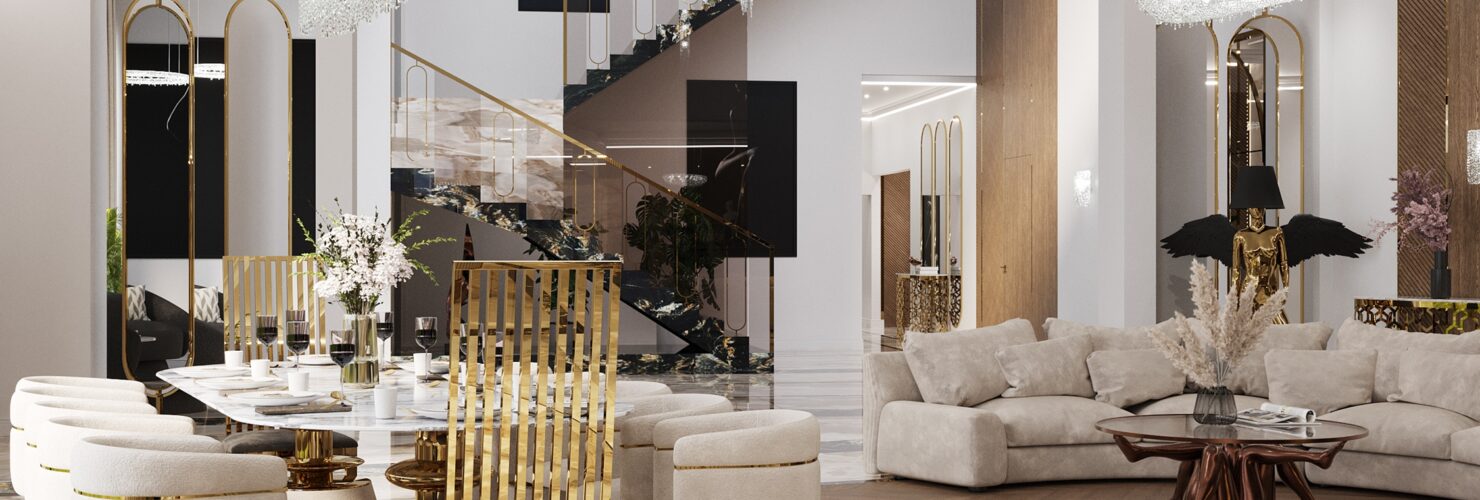 Ekskluzywne wnętrze ze złotem i marmurem